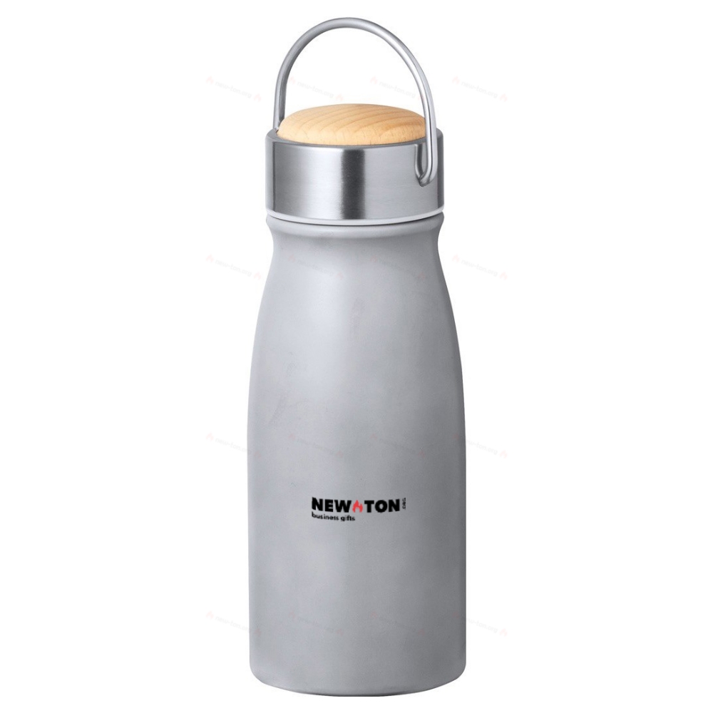 Двухстенная бутылка из переработанной нержавеющей стали с вакуумным утеплителем и деревянной крышкой для переноски, 350 мл.