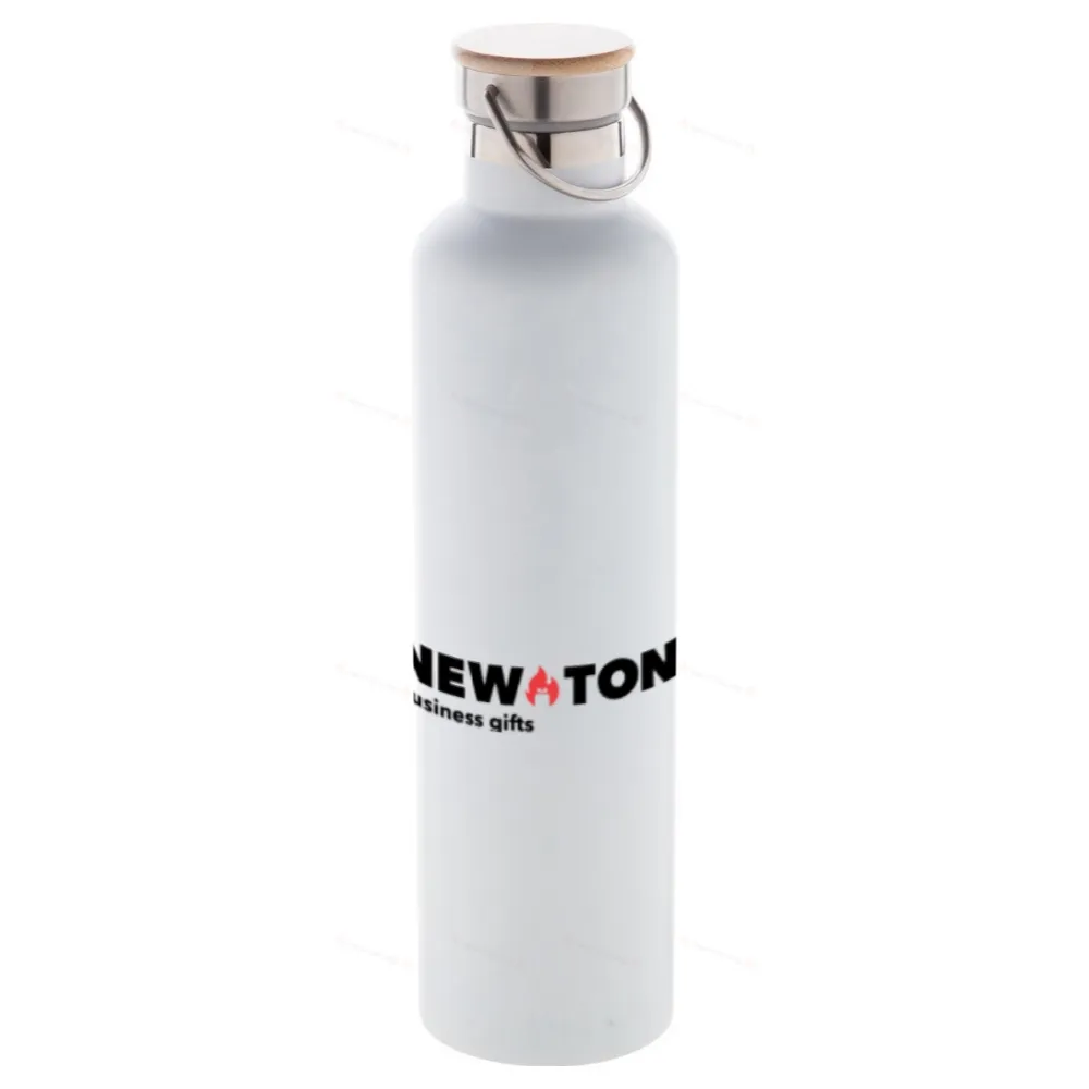 Двухстенная вакуумная колба с изоляцией из нержавеющей стали и бамбуковой крышкой для переноски. 1000 мл.