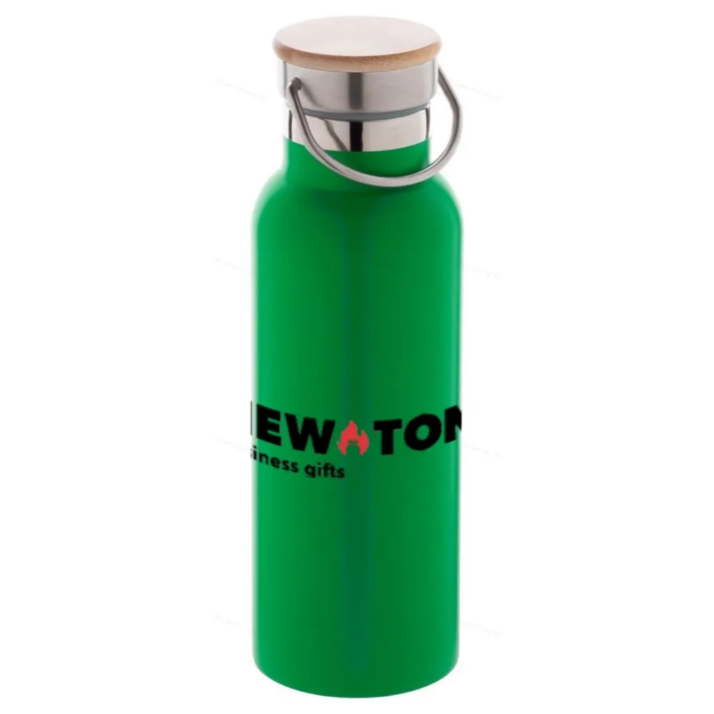 Вакуумная колба с двойной стенкой из нержавеющей стали и бамбуковой крышкой для переноски. 500 мл.