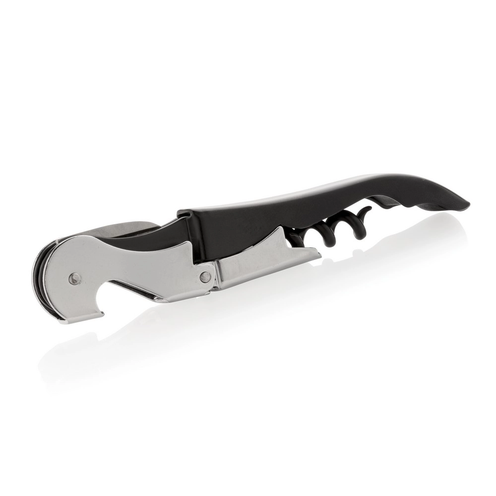 Кельнерский нож, функции: двухступенчатый штопор, нож для фольги, открывалка для бутылок, в подарочной упаковке, углеродный след продукта: 0,41 кг CO2.
