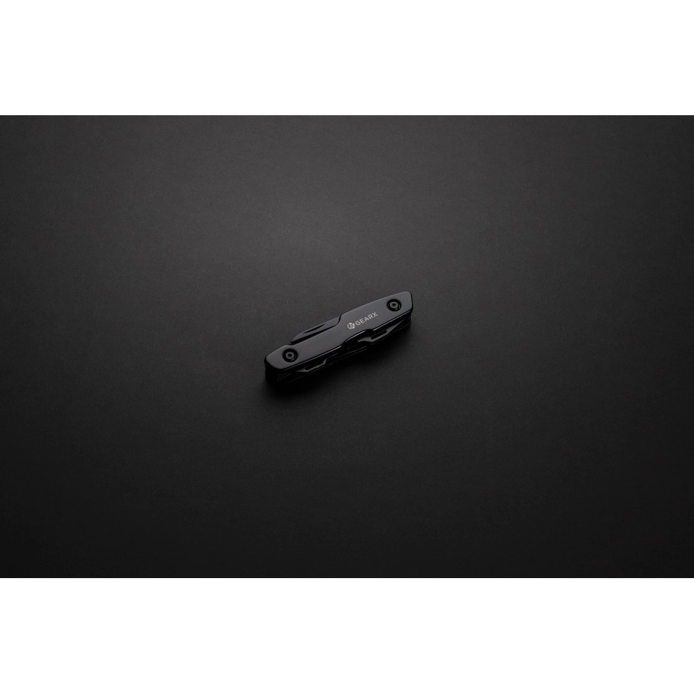 Прямые четкие линии в сочетании с отличной функциональностью. Этот многофункциональный инструмент объединяет все необходимое в одном карманном аксессуаре. Роскошный корпус из алюминия сочетается с инструментами из высококачественной нержавеющей стали 420, выполненными в черном цвете. 13 функций включают: нож, пилу, плоскую отвертку, открывалку для консервов, напильник, маленькую крестовую отвертку, крестовую отвертку, штопор, направляющую для ниток, шило, резак для коробок, открывалку для бутылок и маленькое лезвие. Этот многофункциональный нож готов к использованию, когда вам это нужно. Упакован в роскошную подарочную коробку.
