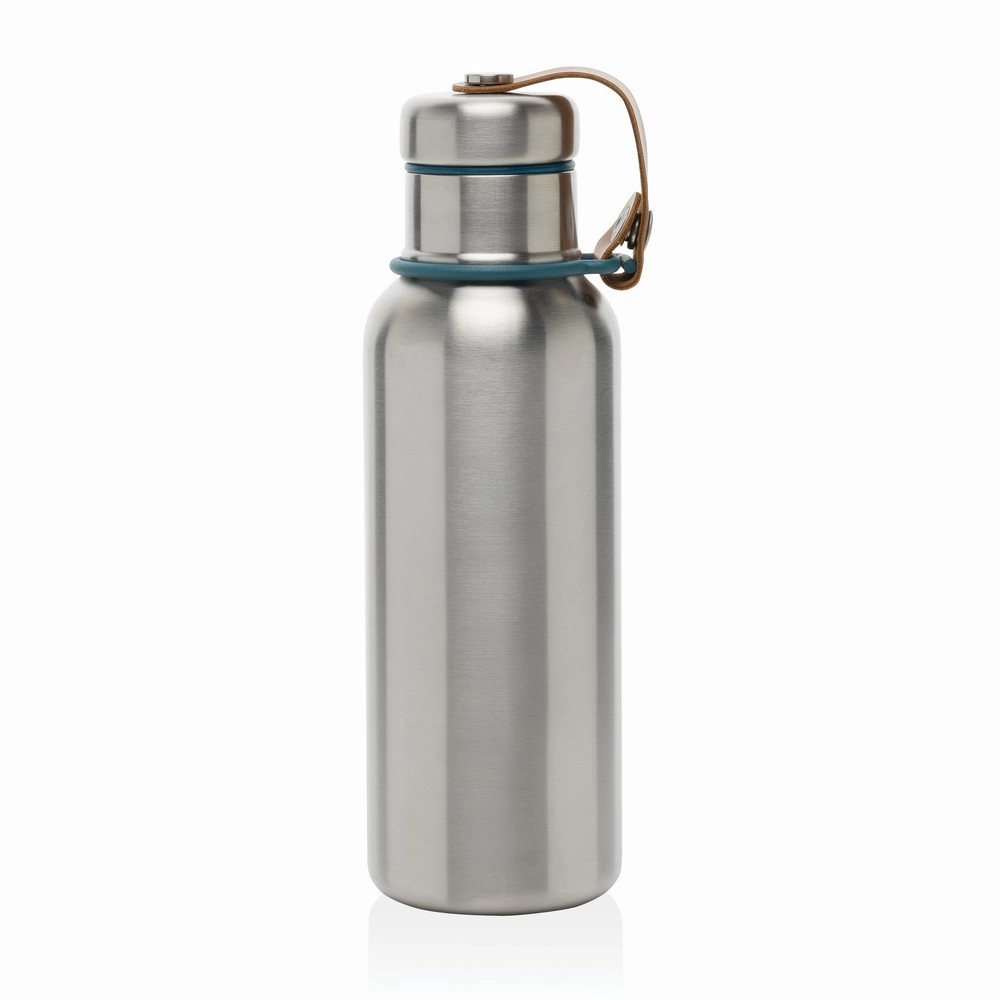 Эта изолированная бутылка для воды из нержавеющей стали - это стильная вакуумная бутылка, которая сохраняет напитки холодными в течение 24 часов или горячими в течение 12 часов. Крышка также полностью выполнена из нержавеющей стали, что исключает контакт воды с пластиком. Искусственная кожа служит петлей для переноски и добавляет изящный элемент дизайна. Только ручная мойка.