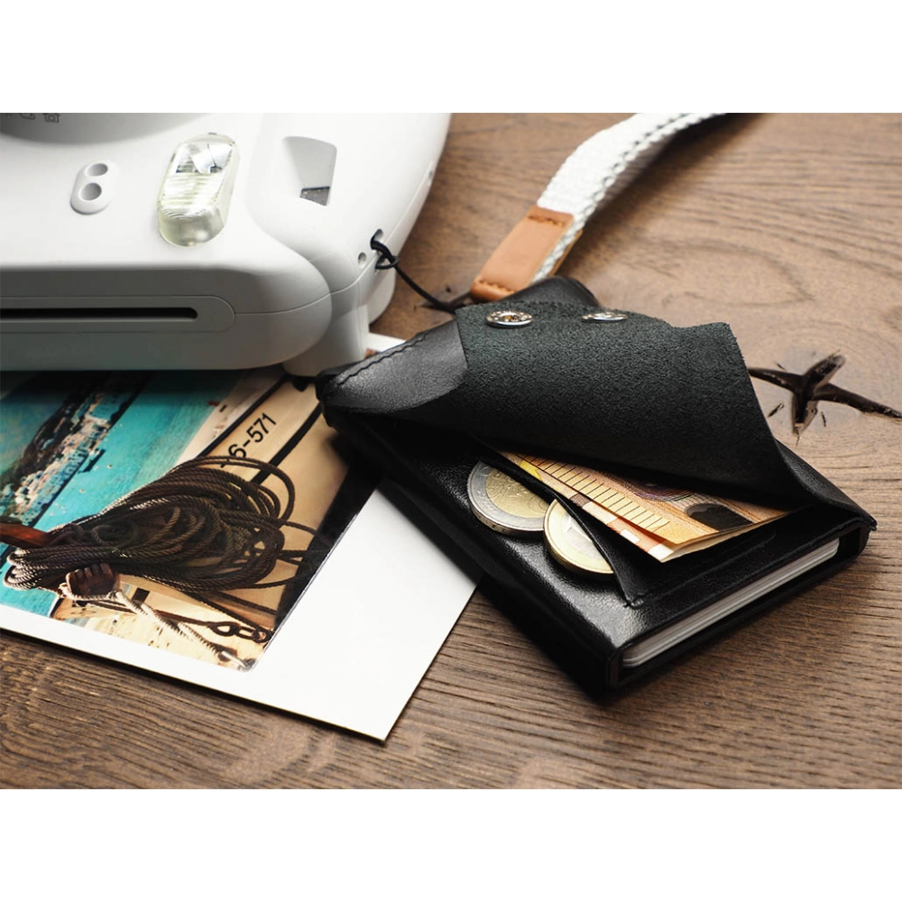 RFID wallet. Banknote pocket. Coin pocket. Holds 6-7 cards. Registered design ®. RFID protection. 2 snaps fastening. Paper box included