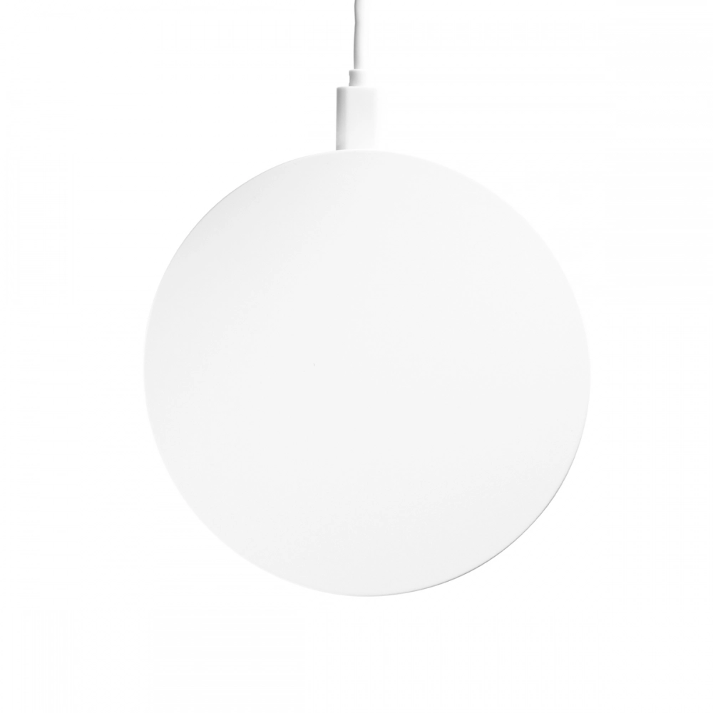 Беспроводное зарядное устройство имеет диапазон выходной мощности до 15 ватт (быстрая зарядка), в зависимости от совместимости заряжаемого устройства. Как только устройство подключается к источнику питания, на нижней части зарядного устройства загорается белое световое кольцо. Дизайн создает впечатление, что устройство парит над зарядным устройством. Во время процесса зарядки световое кольцо вибрирует белым цветом. Белое зарядное устройство можно настроить с помощью выразительной полноцветной УФ-печати или тампонной печати от 1 до 4 цветов. Встроена защита от перенапряжения, короткого замыкания и перегрева. В комплект входит зарядный кабель.
