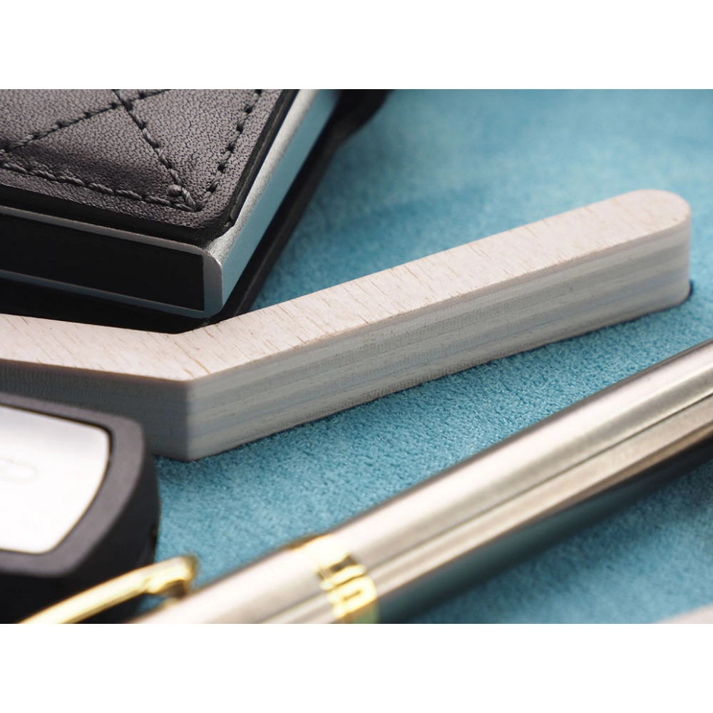 Деревянный органайзер для стола. Имеет металлическую пластину для логотипа. Внутренняя часть отделана алькантарой. В комплект входит картонная коробка.