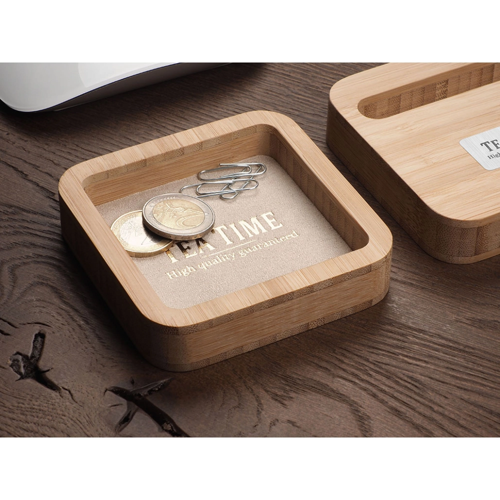 Деревянный органайзер для стола. Внутренняя часть отделана бархатом. В комплекте картонная коробка.