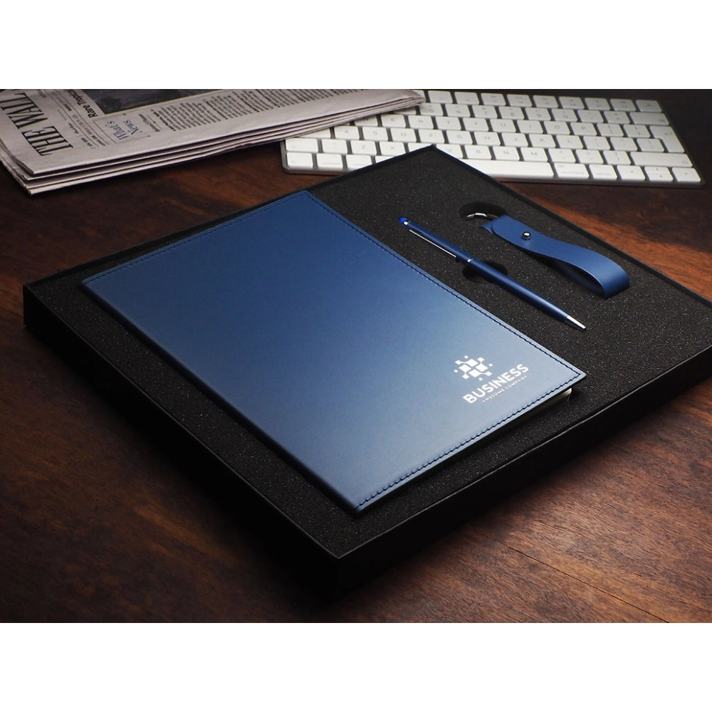 Набор из блокнота, ручки и брелока. Включает сенсорную ручку. Содержит кожаный брелок. В комплекте блокнот формата A5. Поставляется в картонной коробке.