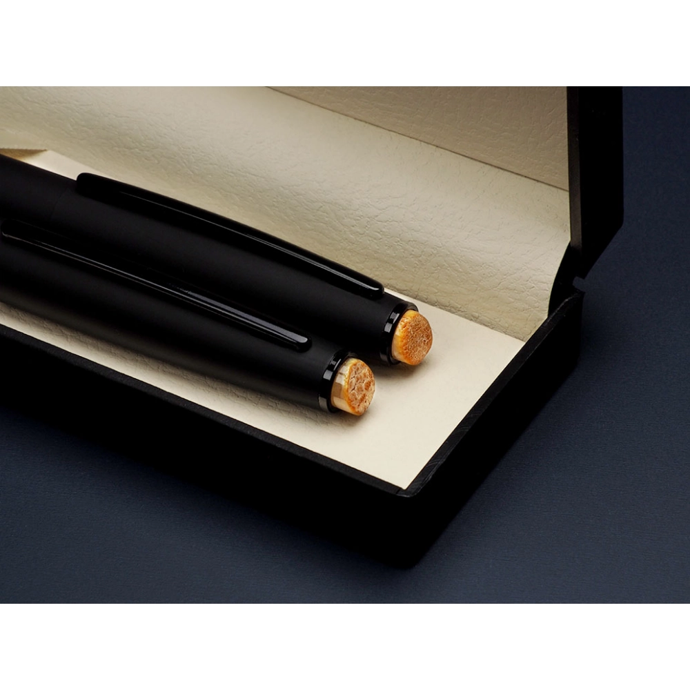 Набор ручек Milk Amber. Цвет чернил - синий. Сатинированная отделка. В комплект входят шариковая ручка и роллер. Поставляется в коробке.