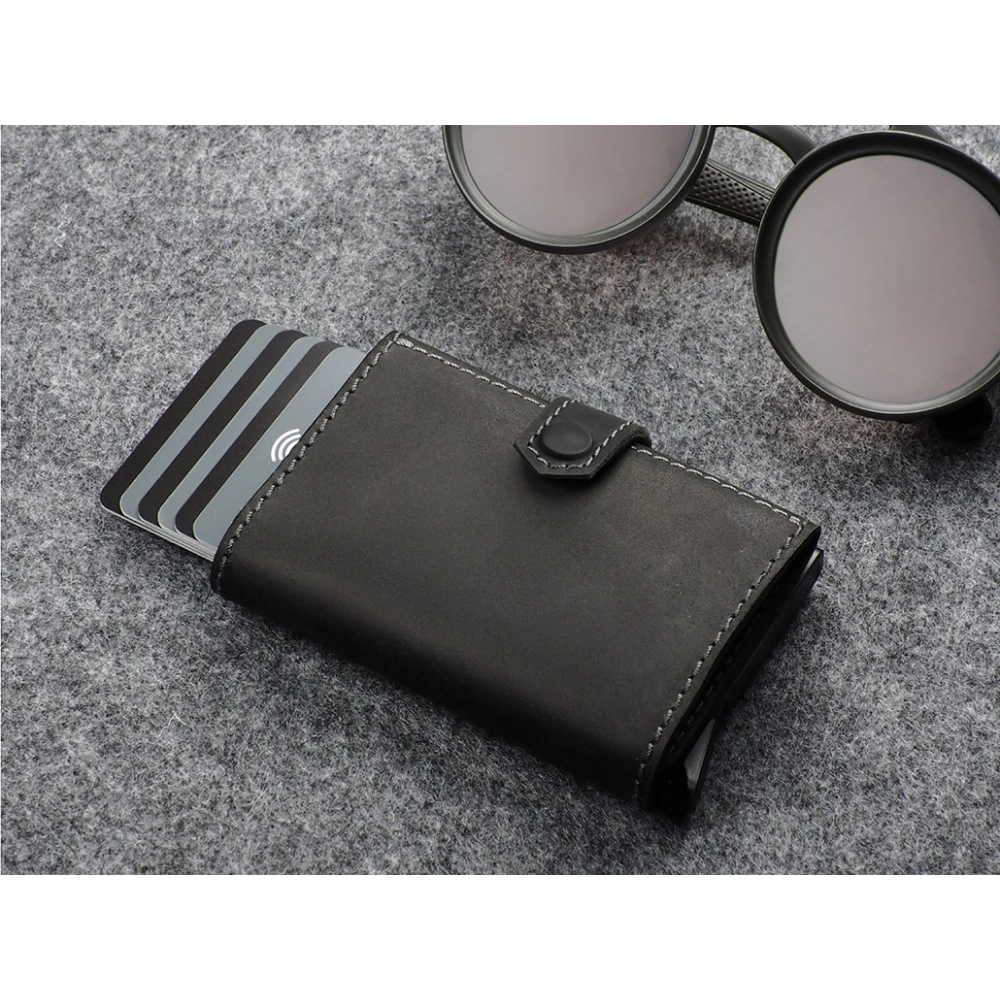 Кошелек с RFID-защитой - из кожи Hunter. Место для карт и банкнот. Вмещает 8 карт. Защита RFID. Застежка на кнопке. В комплекте картонная коробка.