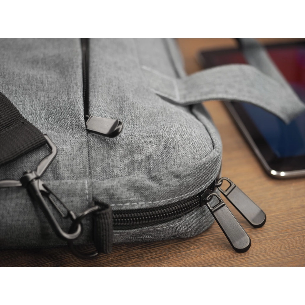 Сумка для ноутбука. 2 кармана на молнии. 2 ручки. Вмещает ноутбук с диагональю 15,6 дюйма. Наплечный ремень.