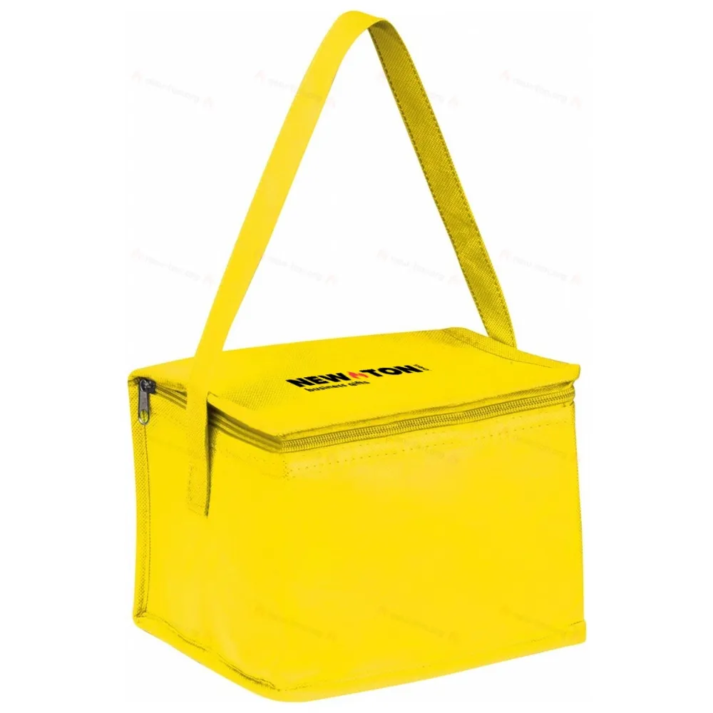 Нетканая сумка-холодильник с ручкой, поместит 6 банок 0,33 л. Логотип можно нанести на клапане.