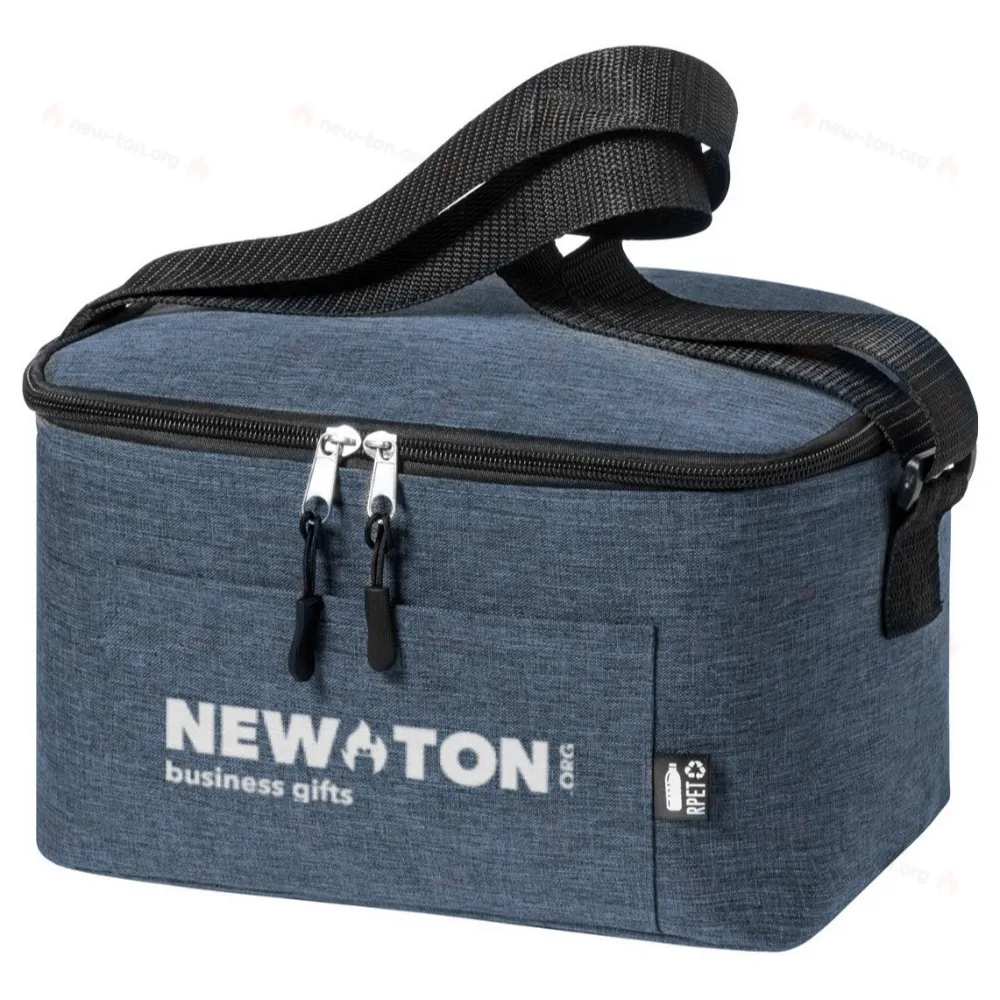 Сумка-холодильник с молнией из RPET с алюминиевой подкладкой, вмещающая 6 банок объемом 0,33 литра. С передним карманом и регулируемым плечевым ремнем. Изготовлена из 600D RPET полиэстера с характерным ярлыком RPET.
