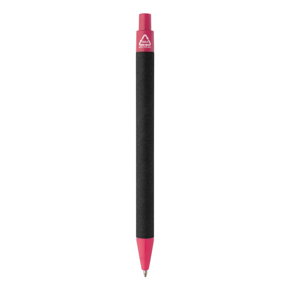 Шариковая ручка из переработанной бумаги с черным корпусом и деталями из переработанного ABS. С синим стержнем.