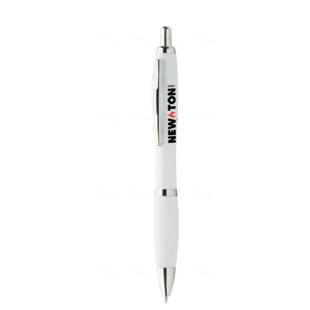 Шариковая ручка из переработанного пластика ABS с цветным хватом и хромированными деталями. С синим стержнем.