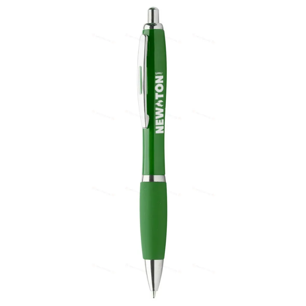 Шариковая ручка из переработанного пластика ABS с цветным хватом и хромированными деталями. С синим стержнем.