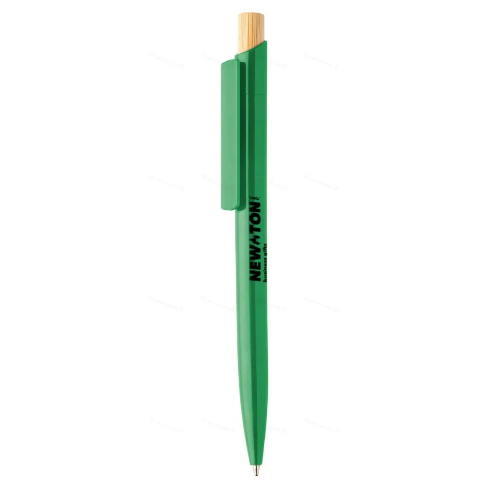 Шариковая ручка из переработанного пластика ABS с кнопкой из бамбука. С синим стержнем.