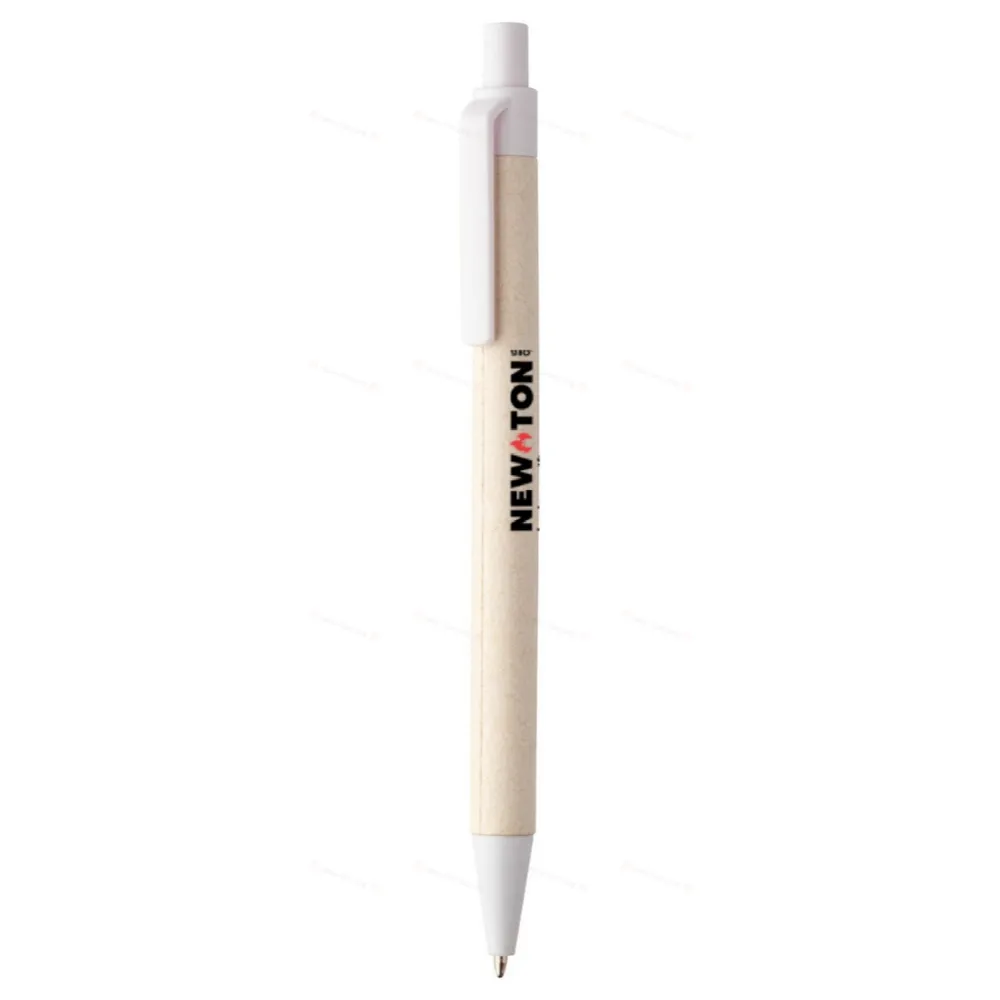 Шариковая ручка из переработанного молочного картонного бумаги с деталями из переработанного пластика ABS. С синим стержнем.