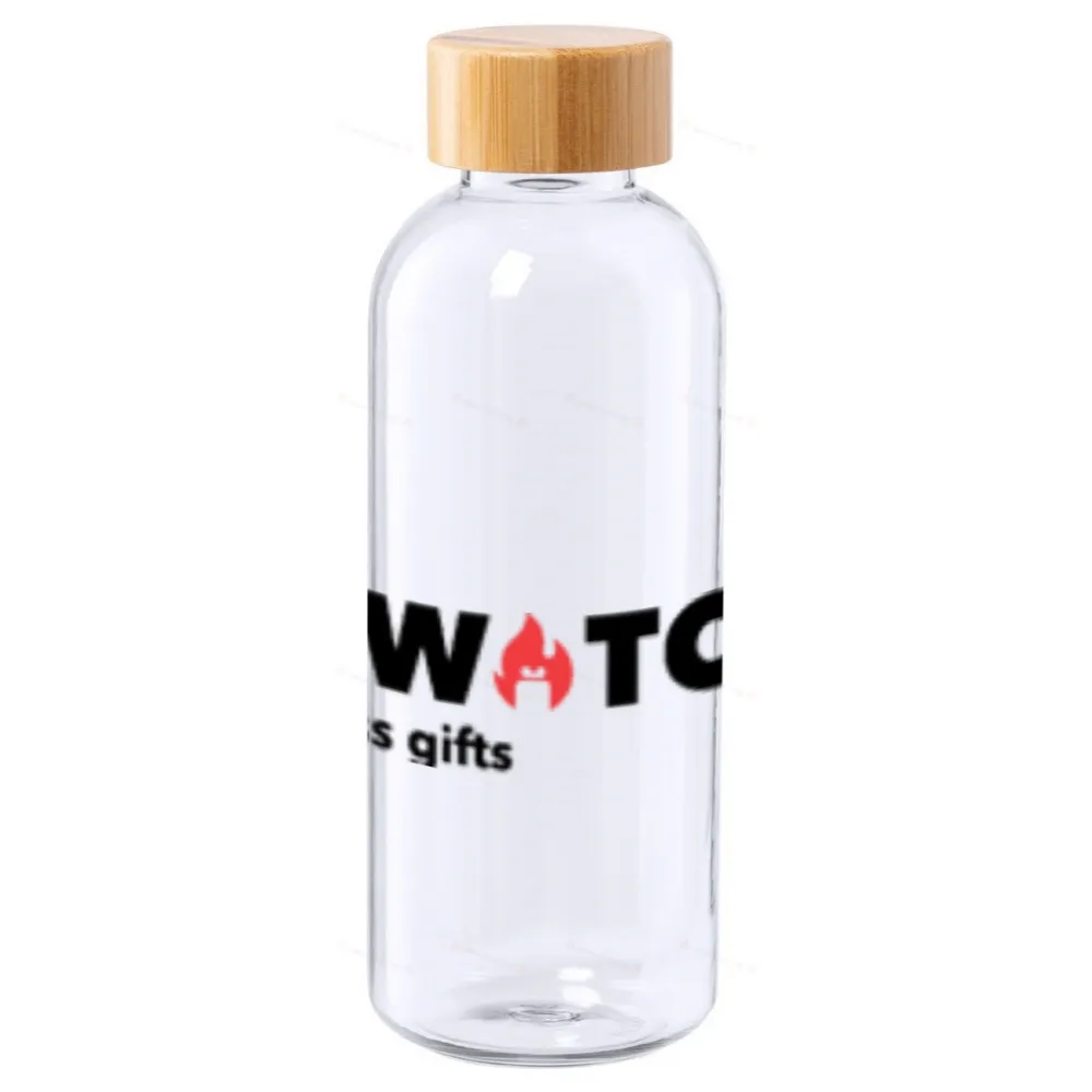 Спортивная бутылка из пластика RPET без BPA с бамбуковой крышкой, 500 мл.