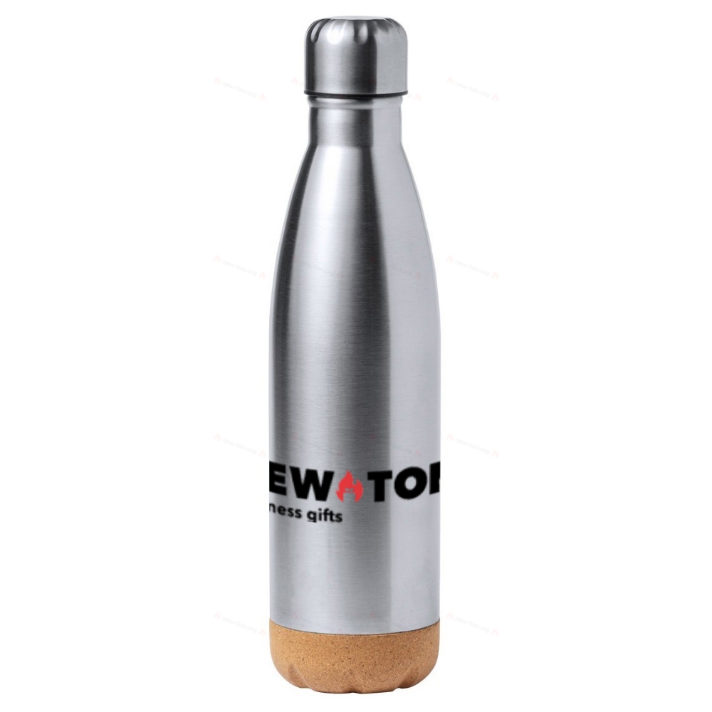 Спортивная бутылка в форме бутылки из нержавеющей стали с натуральной пробковой основой, 750 мл.