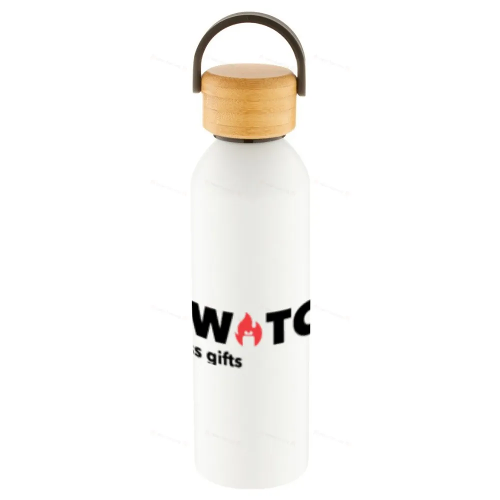 Алюминиевая спортивная бутылка с бамбуковой крышкой для переноски, 600 мл.