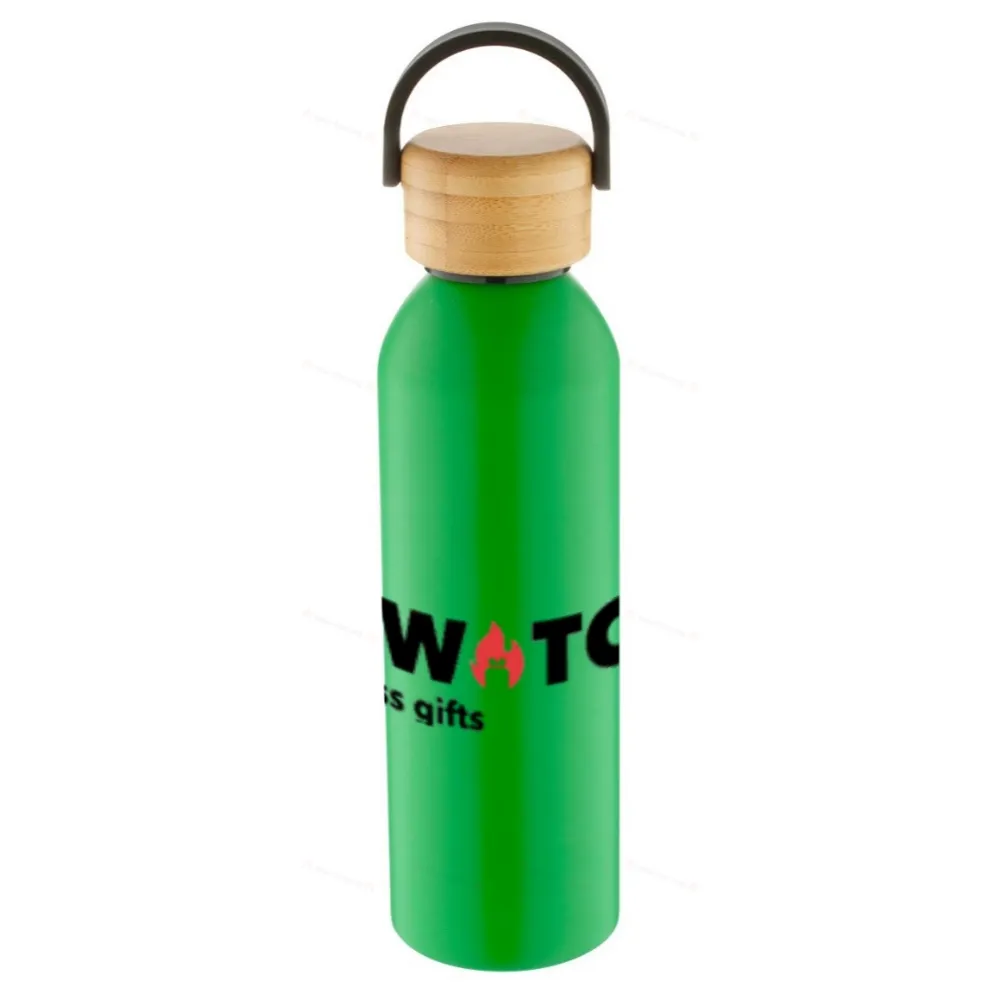 Алюминиевая спортивная бутылка с бамбуковой крышкой для переноски, 600 мл.