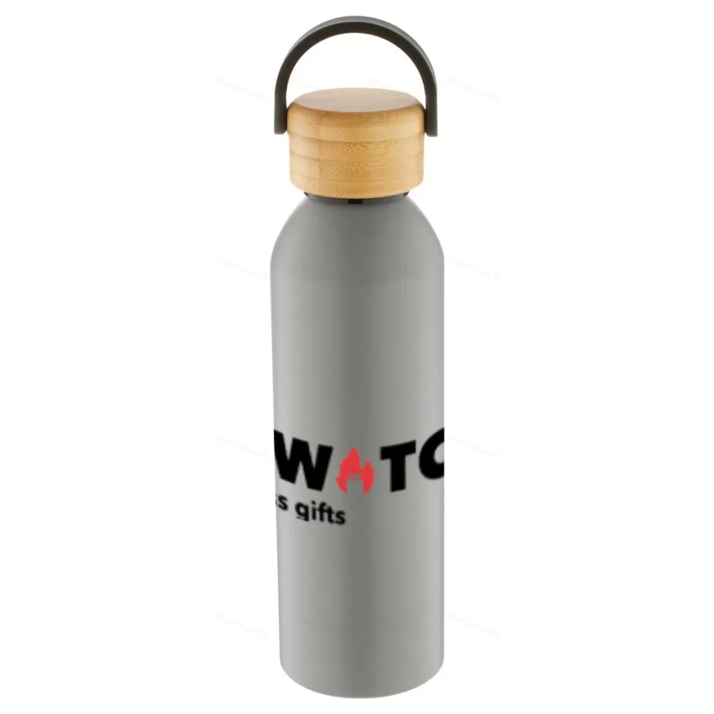 Алюминиевая спортивная бутылка с бамбуковой крышкой для переноски, 600 мл.