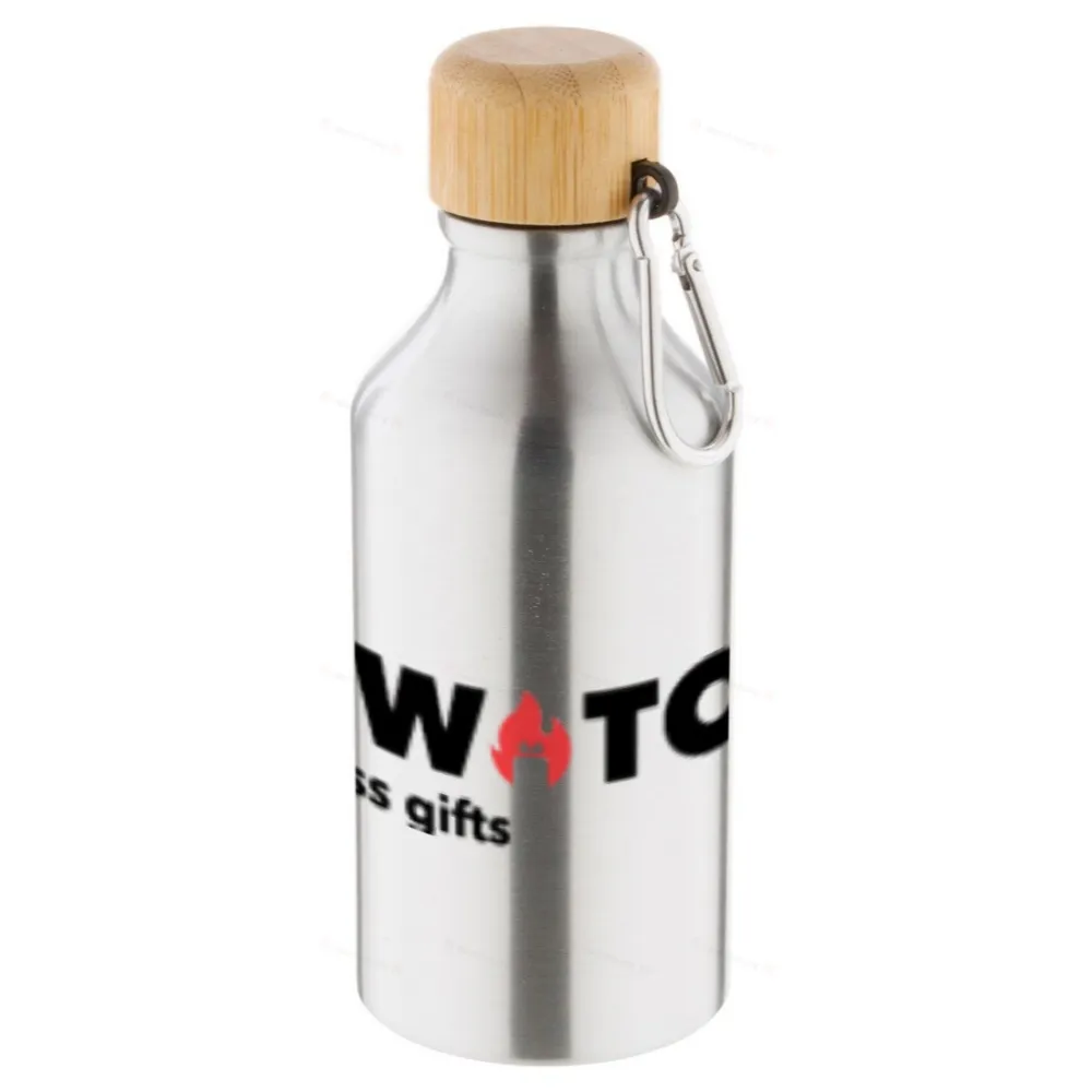 Алюминиевая спортивная бутылка с бамбуковой крышкой и карабином, 400 мл.
