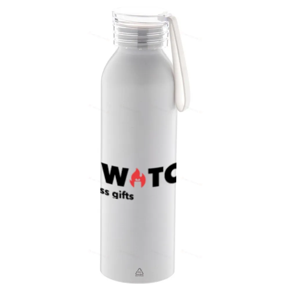 Переработанная алюминиевая спортивная бутылка с крышкой в соответствующем цвете и силиконовым ремешком для переноски, 600 мл.