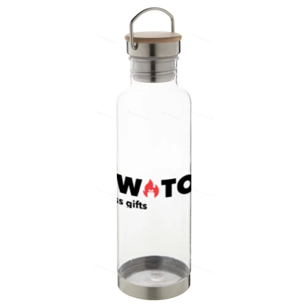 Спортивная бутылка из тритана без BPA с дном из нержавеющей стали и крышкой для переноски с бамбуковой вставкой. 800 мл.