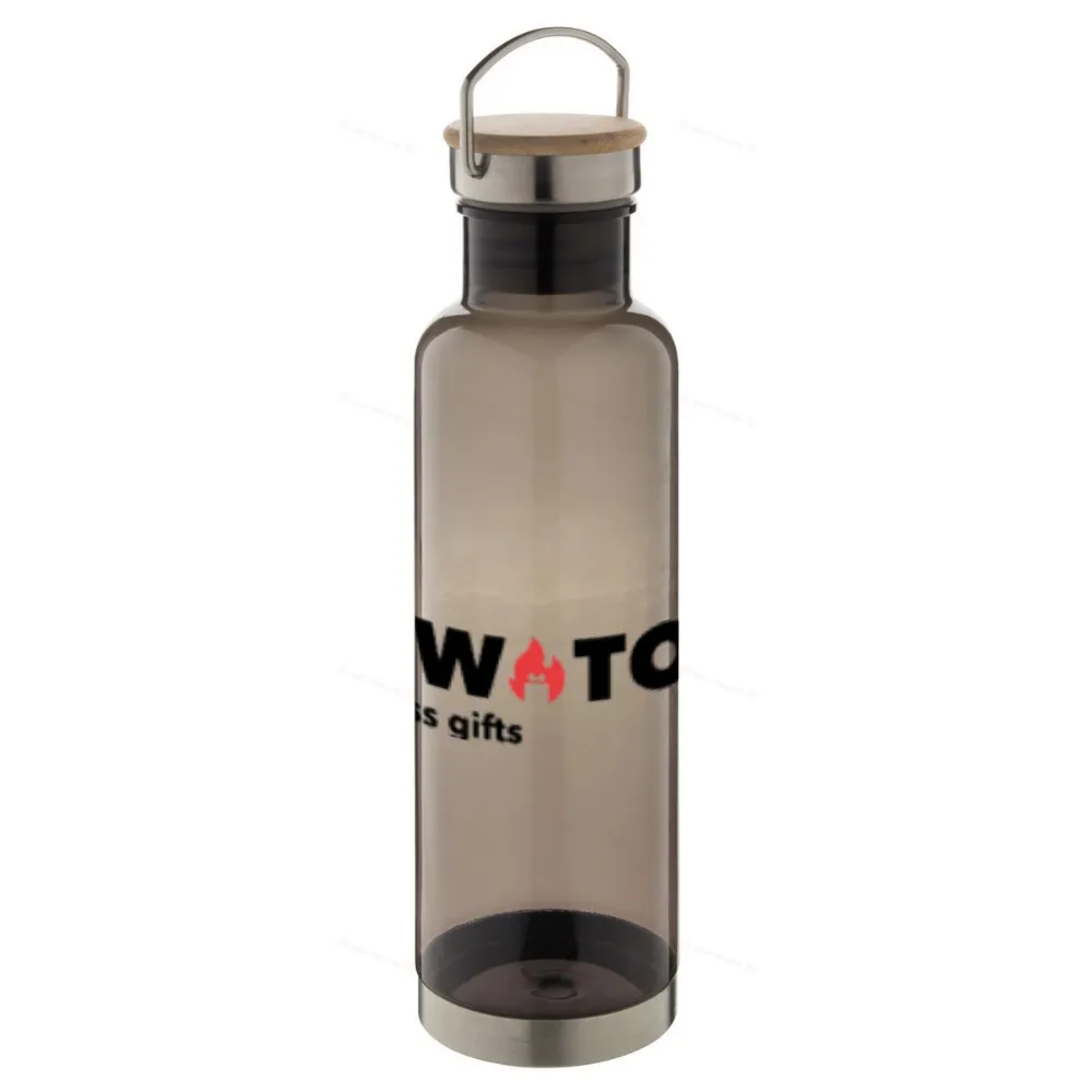 Спортивная бутылка из тритана без BPA с дном из нержавеющей стали и крышкой для переноски с бамбуковой вставкой. 800 мл.