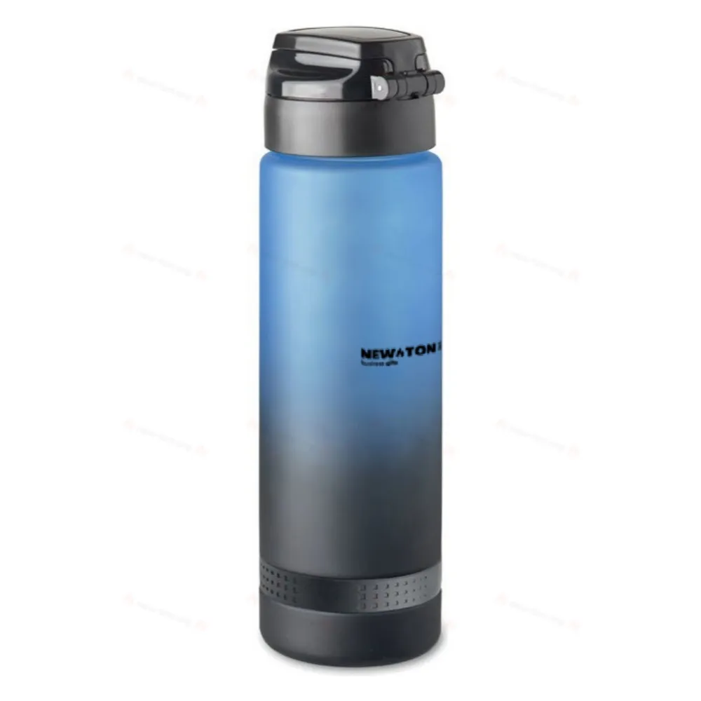 Спортивная бутылка для воды из переработанного пластика с разметкой, регулирующей потребление жидкости, откидной крышкой, замком безопасности и ремешком для переноски. Вместимость: 1 л.
