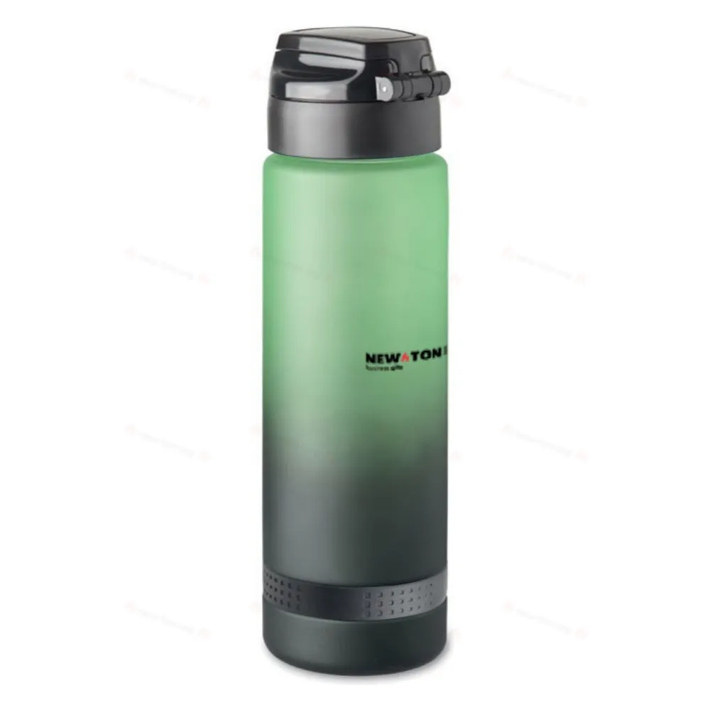 Спортивная бутылка для воды из переработанного пластика с разметкой, регулирующей потребление жидкости, откидной крышкой, замком безопасности и ремешком для переноски. Вместимость: 1 л.