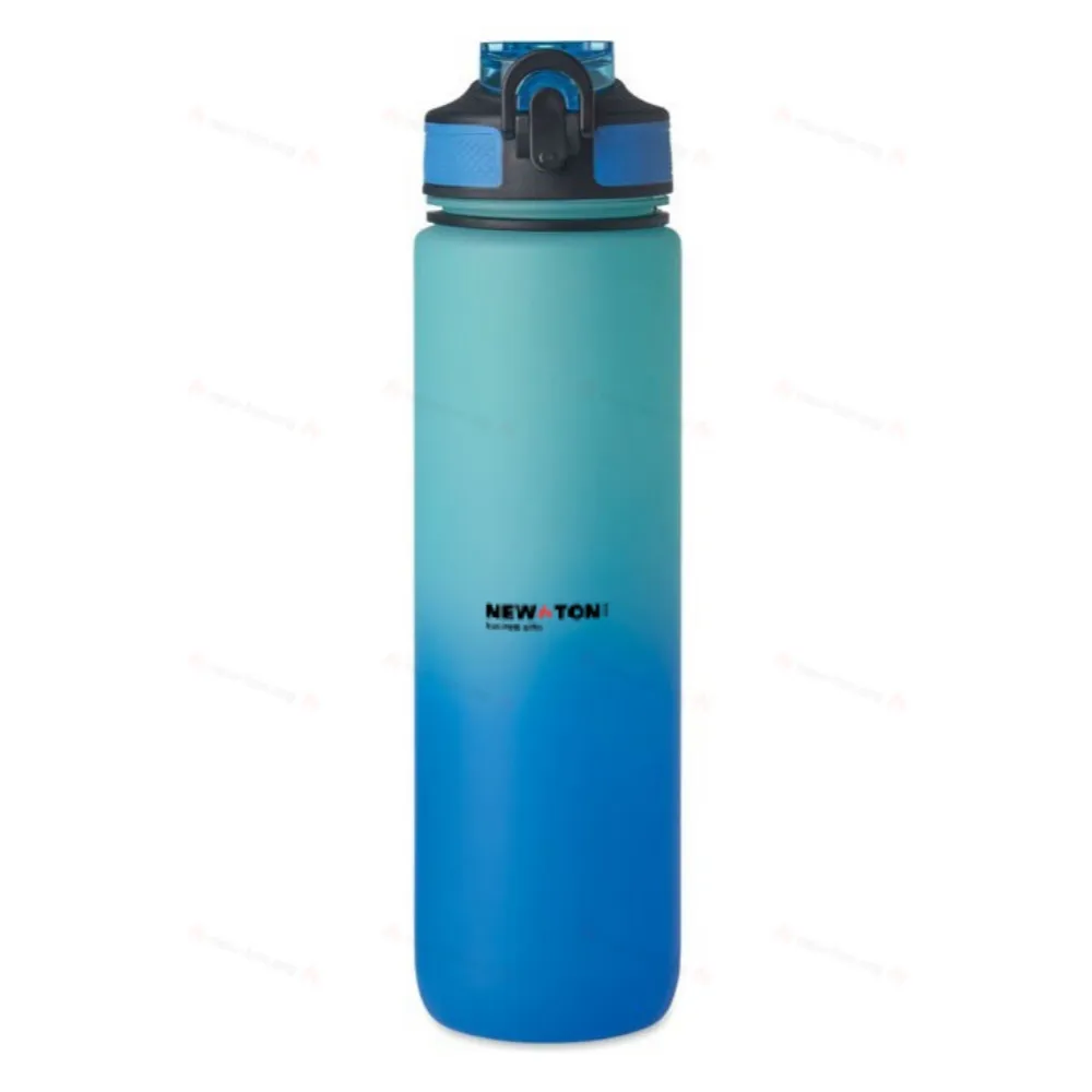 Спортивная бутылка для воды из переработанного пластика со встроенной соломинкой для питья, мягким силиконовым горлышком, разметкой, регулирующей потребление жидкости, удобной крышкой с замком безопасности и ремнем для переноски. Объем 1 л.