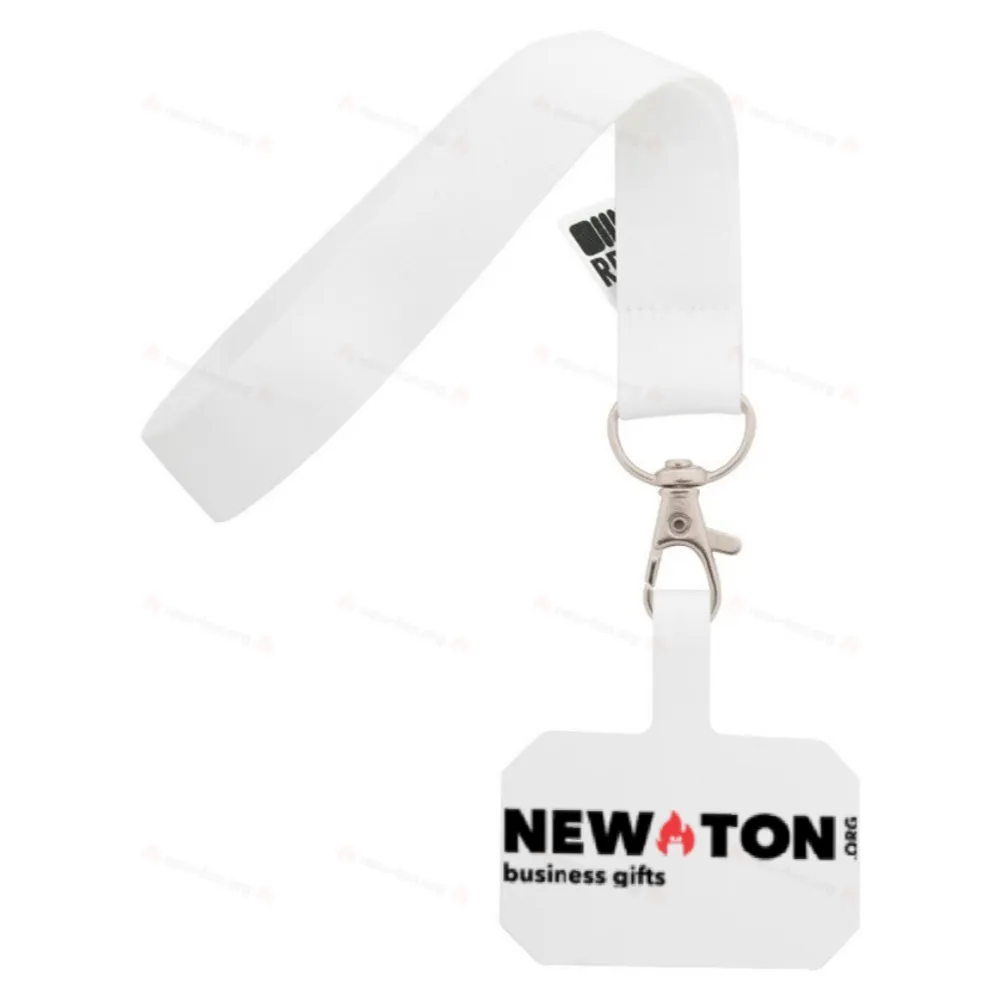 Изготовленный на заказ, мобильный держатель на запястье из RPET с металлическим карабином и полноцветным печатным вставкой для телефона на неразрывной бумаге. С сублимационной печатью графики с обеих сторон. Минимальный заказ: 100 шт.