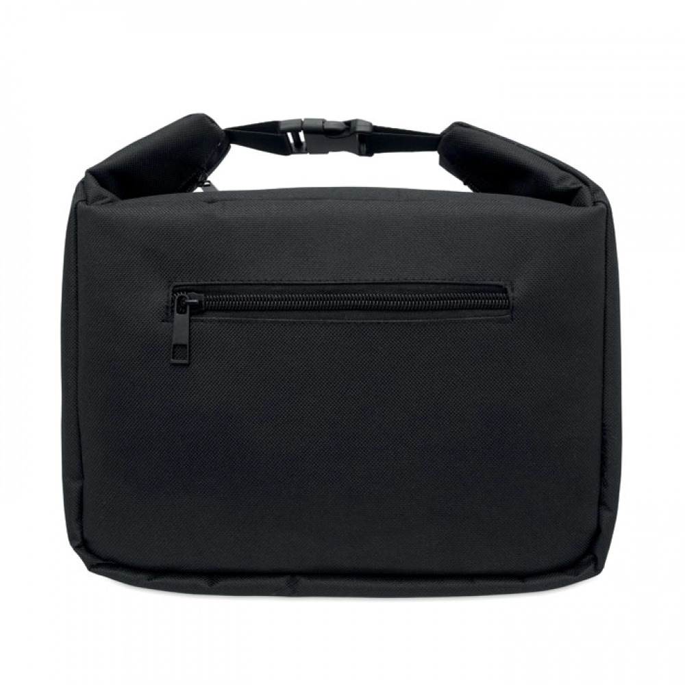 Термосумка для обедов с внутренним индикатором температуры, изготовленная из 600D RPET с 3 мм пенополиэтиленом и алюминиевой фольгой. Застежка на пряжке. Основное отделение на молнии. С боковым карманом на молнии. Объем: 10 литров.