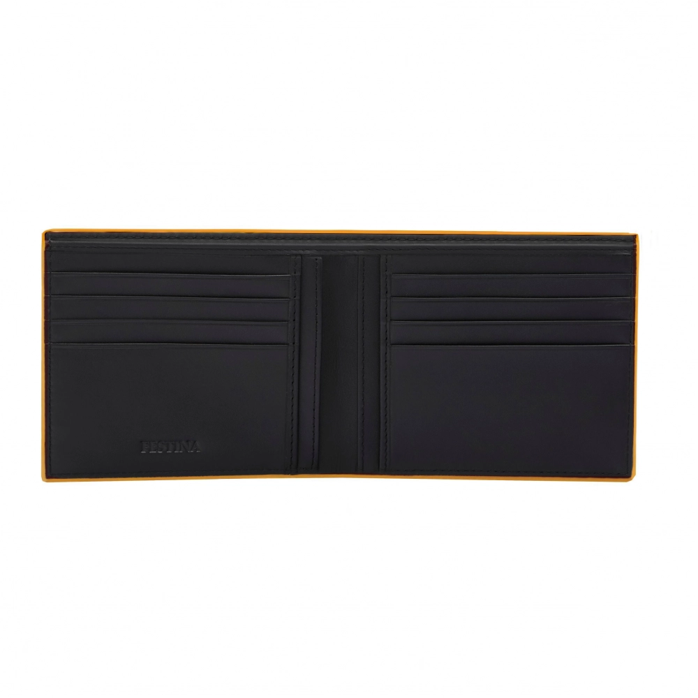 Кошелек для карт Black Edition от Festina - это проявление вечной элегантности с смелым акцентом. Изготовленный из тщательно отобранных матовых черных кож, он украшен культовой табличкой F в тонком матовом черном исполнении. Конструкция дополнена яркими оранжевыми деталями краев, добавляя динамичный контраст к элегантной эстетике. Этот классический кошелек для карт имеет восемь слотов для карт, четыре боковых отделения и большое отделение для банкнот, разделенное на две секции, предлагая исключительную функциональность и изысканный стиль. Настоящий классический образец в современном исполнении.