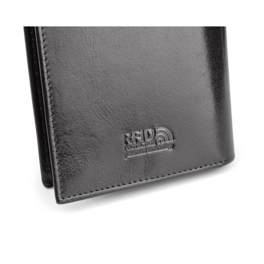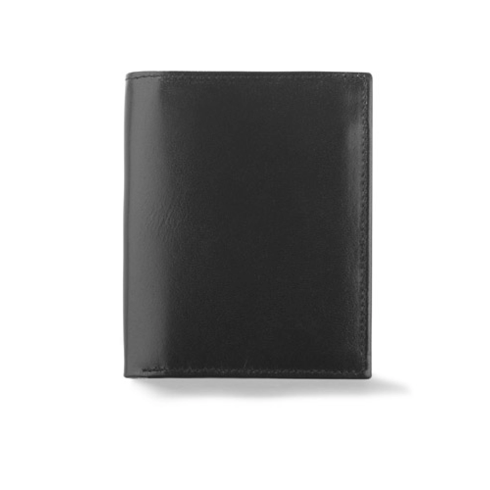 Кожаный кошелек с отделением для монет, двумя отделениями для купюр, четырьмя слотами для кредитных карт и пятью карманами для документов, а также одним карманом на молнии. Кошелек упакован индивидуально в деревянную коробку. Кроме того, кошелек оснащен защитной пленкой, блокирующей RFID-сигнал, что предотвращает кражу данных с кредитных карт.