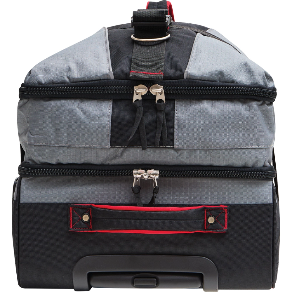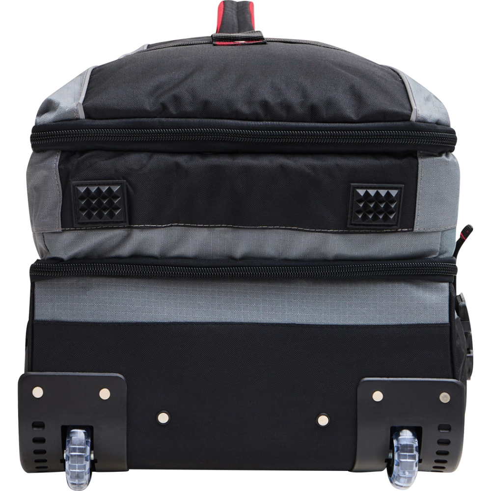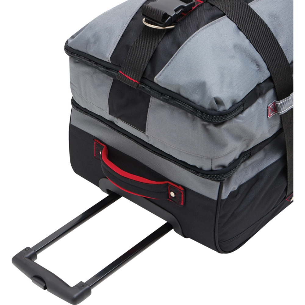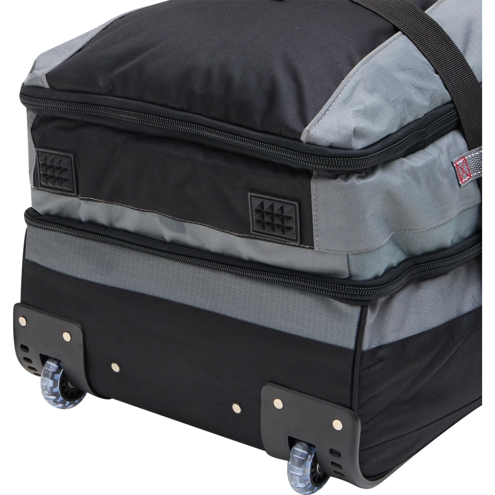 Сумка-тележка для путешествий BoGi XL: отдельные уровни упаковки с молнией, основное отделение с 2 перегородками, 1 сетчатый карман на одной из перегородок, 2 внутренних кармана с молнией, 2 подушечки для переноски, выдвижная система тележки, 2 компрессионных ремня с застежкой на боковой пряжке, отделение для адреса на задней стороне, плавно скользящие колеса с защитными уголками, 2 рельсы для защиты от ступеней, ножки внизу, встроенный кодовый замок.