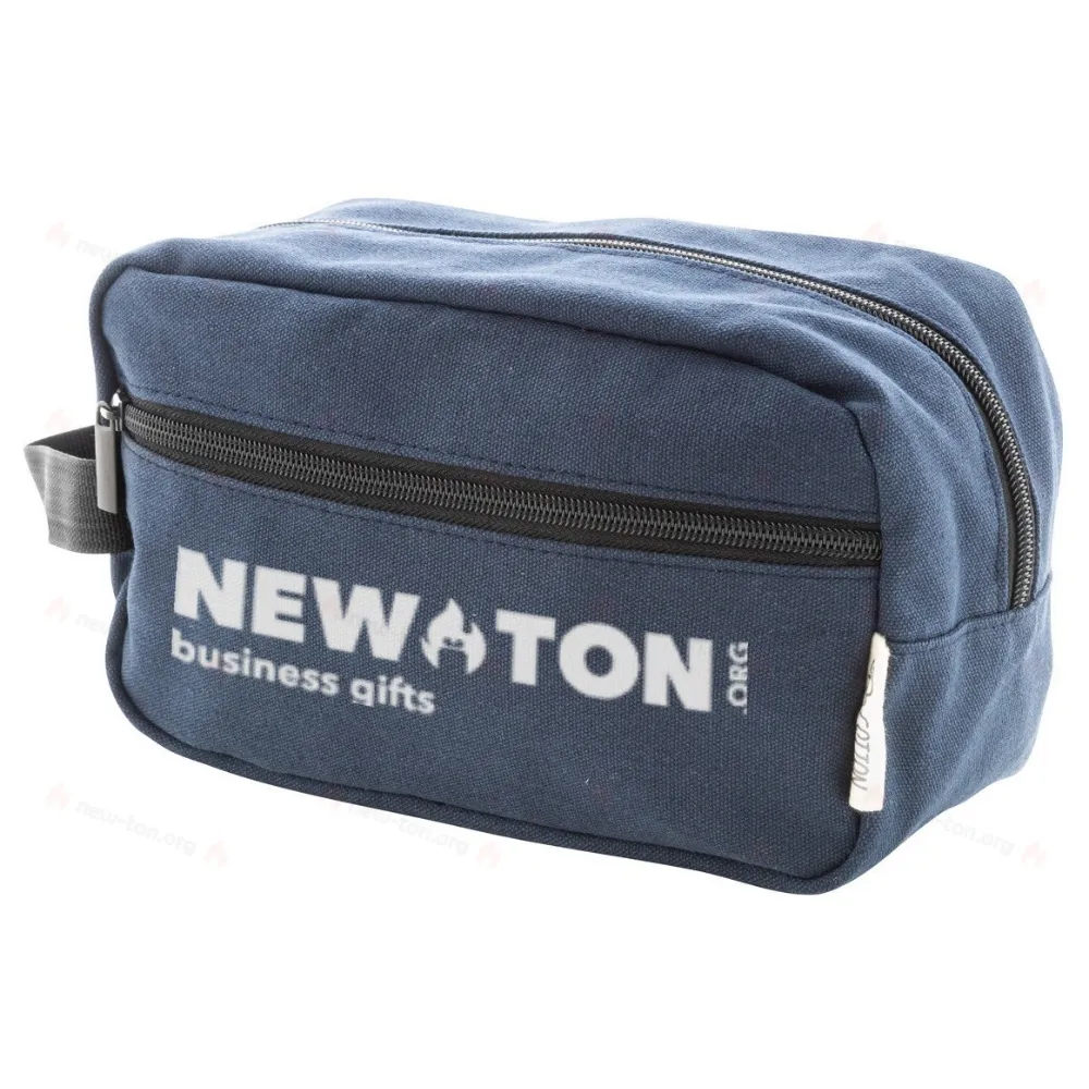 Косметичка из переработанного холста с двумя карманами на молнии и ручкой для переноски. 70% переработанный хлопок и 30% полиэстер RPET. С отличительной этикеткой из переработанного хлопка.