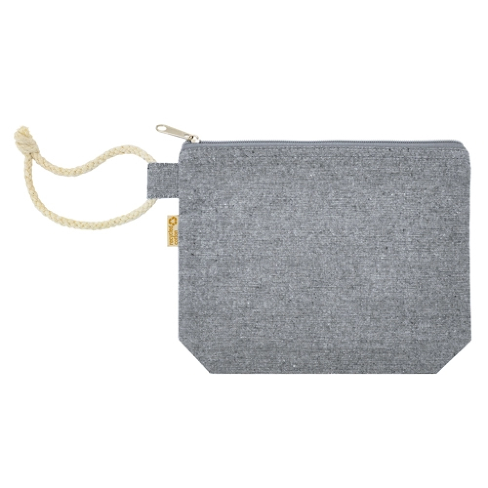 Косметичка из переработанного хлопка в разноцветной расцветке с оригинальным шнурком, доступна в четырех цветах.
