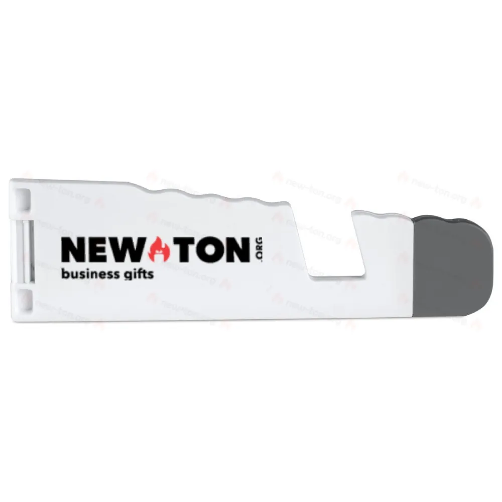 Складной держатель для планшета или смартфона из белого пластика. Края из серого силикона.