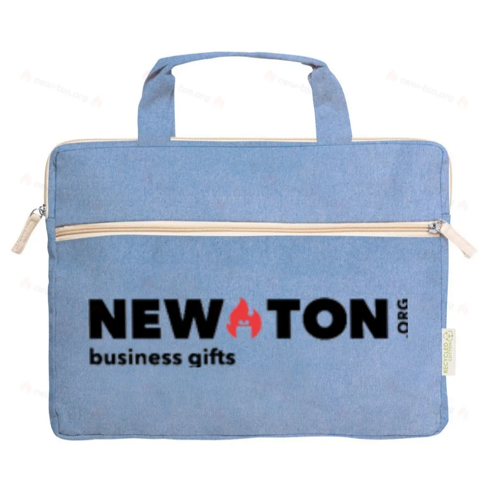 Сумка для документов из переработанного хлопка с карманом на молнии и характерной этикеткой из переработанного хлопка. 100% переработанный хлопок, 275 г/м².