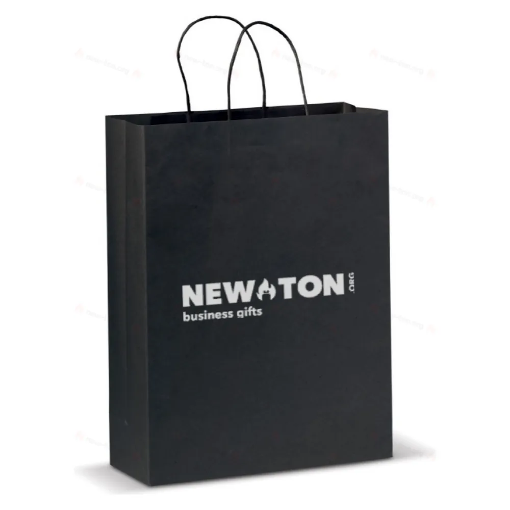 Сумка-переноска из матовой бумаги большого размера с ручками из перевернутой бумаги. Сумка имеет экологичный вид. Подходит как подарочный пакет или сумка для подарков. Сертифицирован FSC.