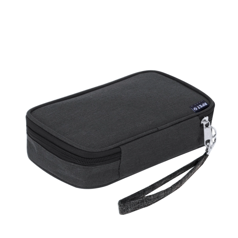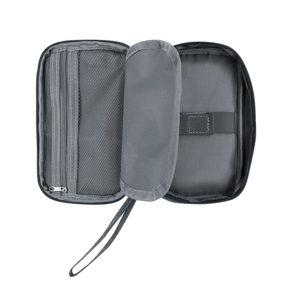 Органайзер изготовлен из RPET 600D. Включает в себя полностью открывающийся основной карман с металлической застежкой и несколько внутренних карманов, идеальных для хранения кабелей: 2 кармана с эластичными лентами, 1 с молнией и отделение с эластичной лентой и липучкой. В комплекте имеется ремень для удобной транспортировки. С этикеткой RPET. Материал RPET изготовлен из переработанного пластика, способствуя повторному использованию пластиковых отходов и помогая устойчивости планеты.