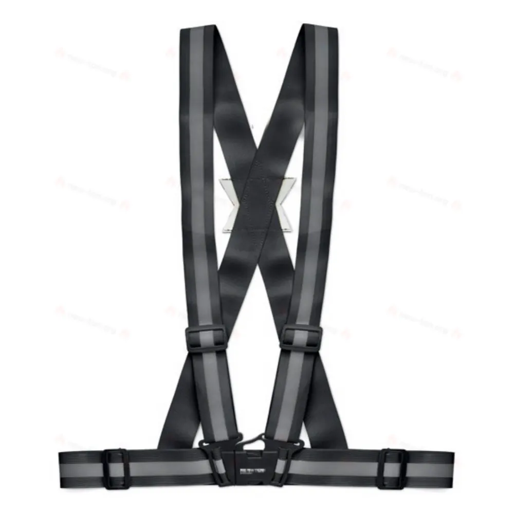 Яркий регулируемый светоотражающий ремень с серебряными полосками. Использовать только для рекламных целей.