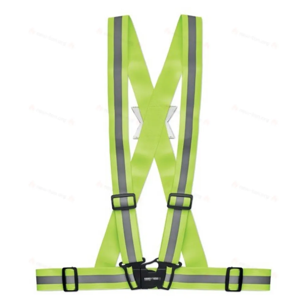 Яркий регулируемый светоотражающий ремень с серебряными полосками. Использовать только для рекламных целей.