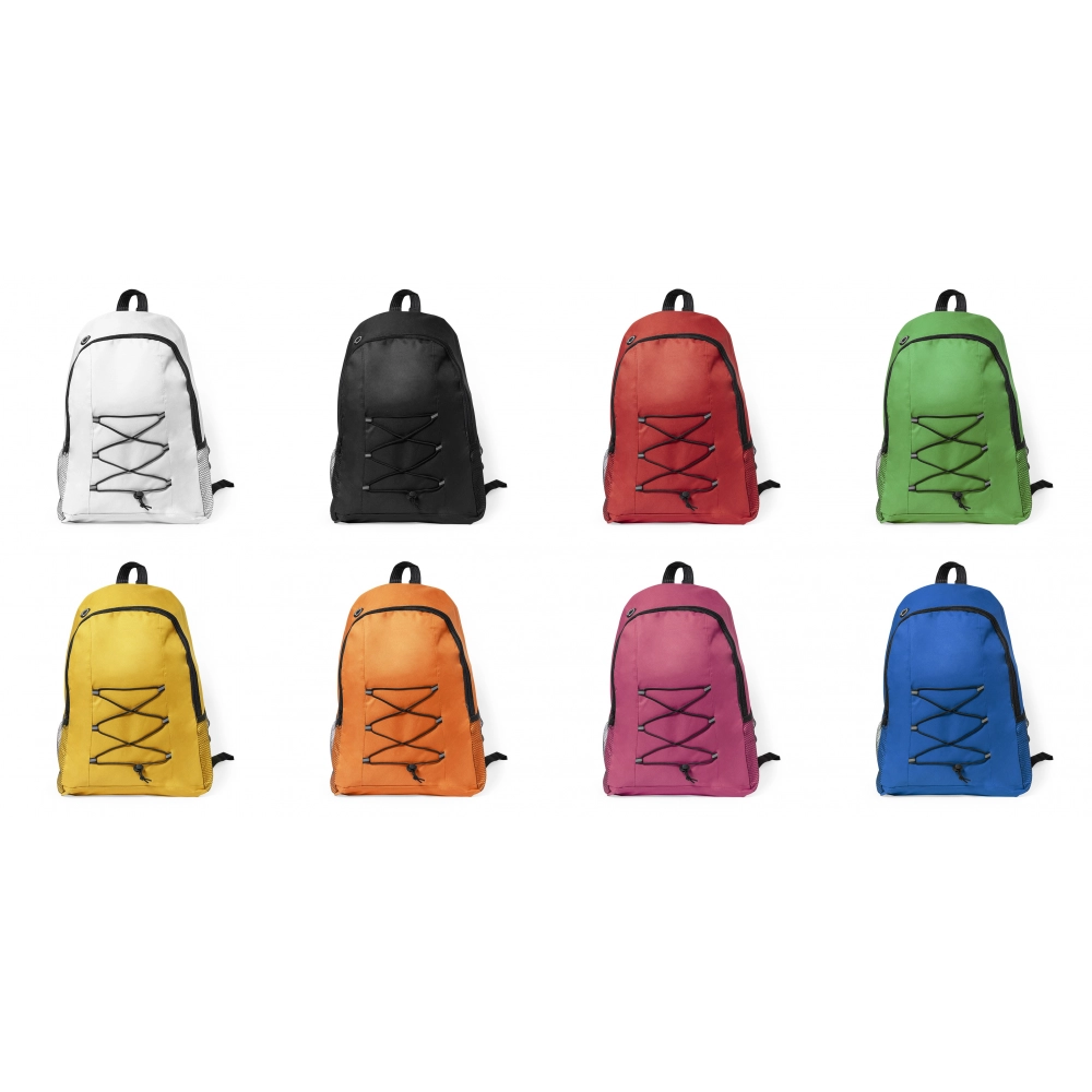Особенности Рюкзак из прочного полиэстера 600D смелого дизайна различных цветов, с застежкой-молнией, выходом для наушников, эластичным шнуром спереди со светоотражающими опорами и эластичными сетчатыми карманами по бокам. Аксессуары черного цвета, с мягкой спинкой и регулируемыми плечевыми ремнями с подкладкой. Мягкая спинка и Плечевые ремни