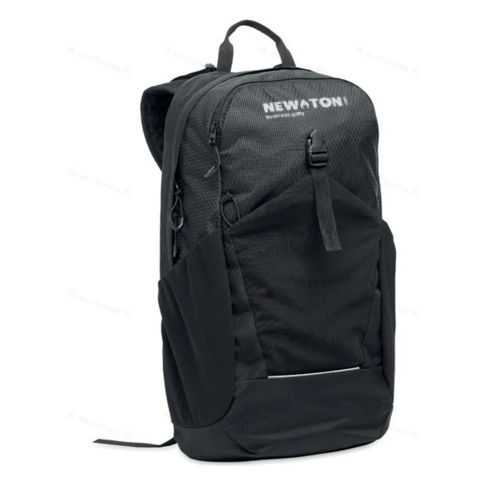 Походный рюкзак 18 л из водоотталкивающего нейлона 420D со светоотражающей полосой. Имеет внутреннее отделение для ноутбука 15 дюймов. Одно переднее отделение на молнии и один передний карман с застежкой-пряжкой. Два боковых кармана. Мягкая спинка и плечевые ремни. Вентилируемая задняя часть.