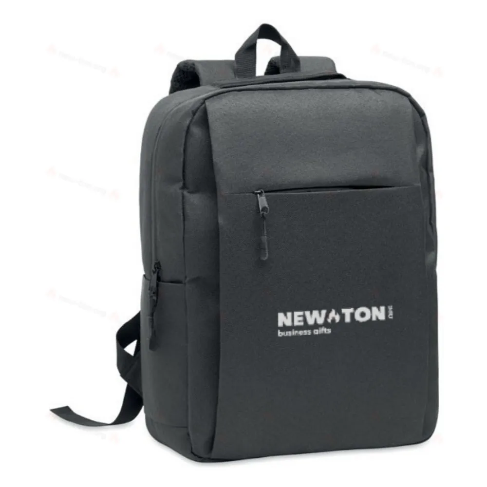 Тонкий рюкзак из полиэстера 600D RPET с подкладкой из 210D. Имеет отделение для ноутбука 15 дюймов, внешний карман на молнии для планшета 10 дюймов, 2 внутренних кармана, 2 внутренних кармана для ручек, передний карман на молнии. 2 боковых кармана. Мягкая спинка и плечевые лямки. Ремень для крепления к чемодану.
