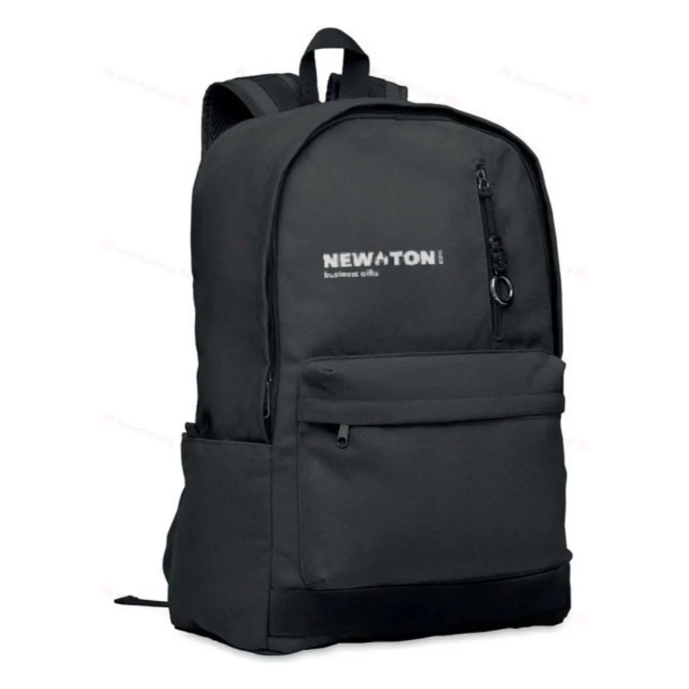 Рюкзак для 15-дюймового ноутбука из переработанного хлопка. Большой передний карман на молнии с внутренним отделением для ноутбука. Маленький передний карман на молнии. Два боковых накладных кармана. Спинка и плечевые ремни, задняя панель и дно с мягкой подкладкой. 450 гр/м².